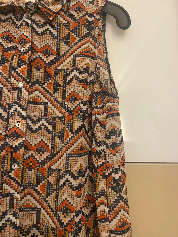 Chemisier léger coloré 38 Longueur 75 cm Polyester Corail bleu blan