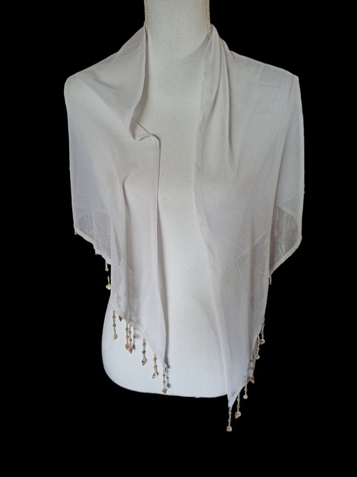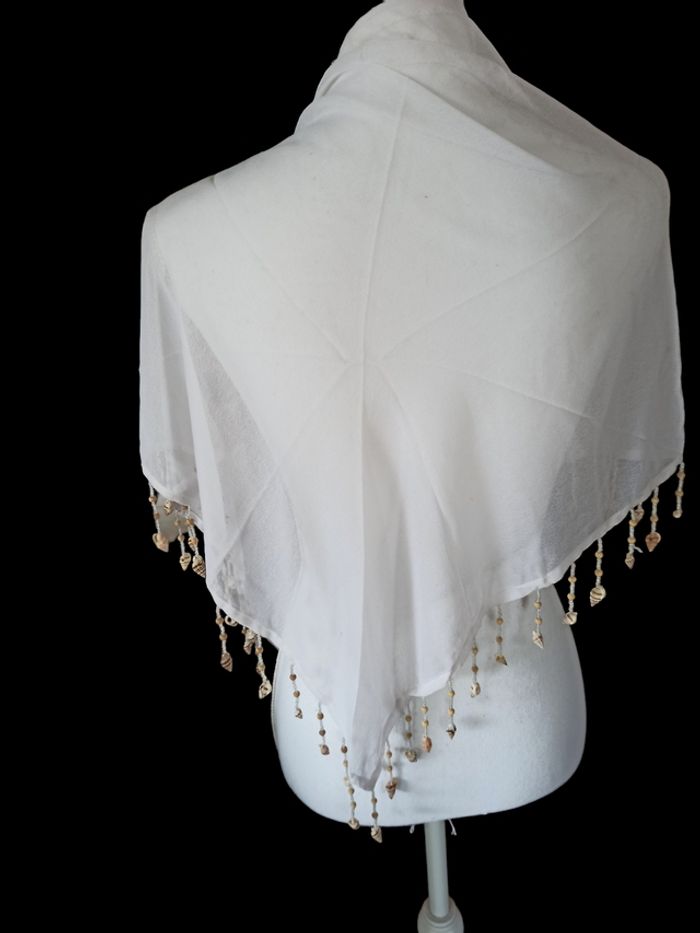 Châle blanc coquillages - photo numéro 1