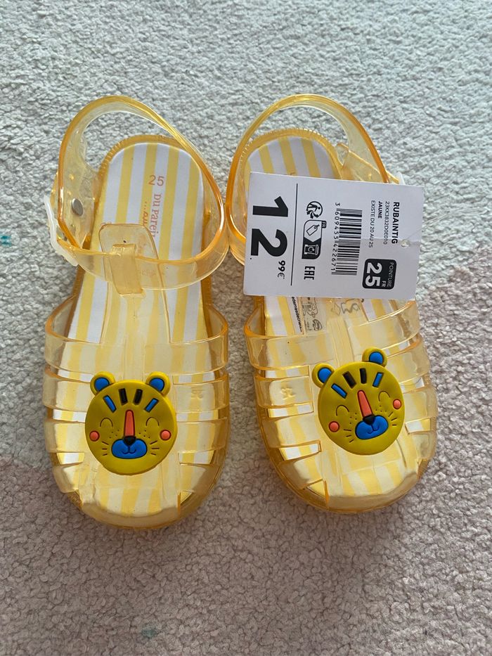 Sandales en plastique de couleur jaune orangé neuves avec étiquette taille 25 de la marque du pareil au même Possibilité de remise en main propre à Levallois -Perret (Metro Louise Michel ligne 3)