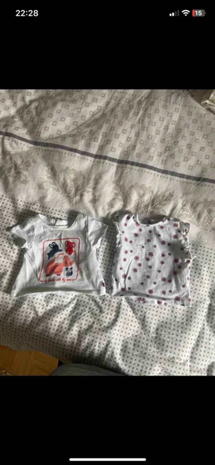 Vend t-shirt T-shirt avec les animaux de la marque obaïbi 1 mois T-shirt avec les fleurs de la marque kiabi 1 mois
