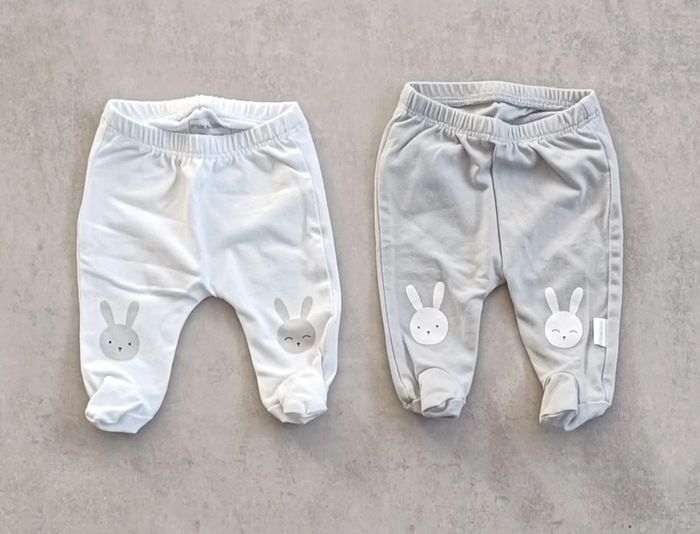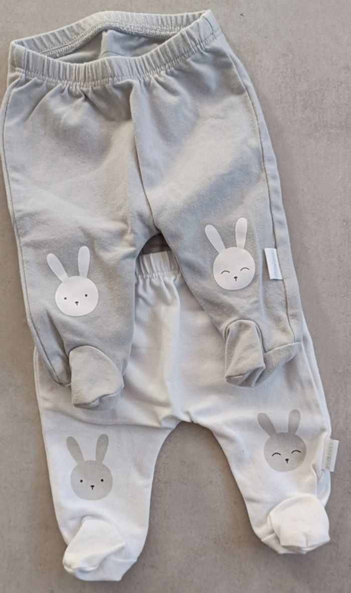 Lot de 2 pantalons mixtes bébé. Taille 0 mois. Motif lapins 🐰 🐰 Porté 1 fois le gris. Le blanc est neuf #naissanceeloise83125