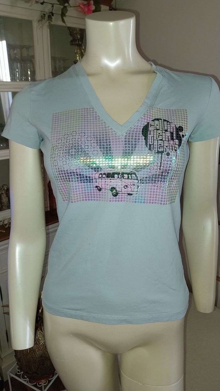Par ici le t-shirt des vacances so cute Top/ t-shirt manches courtes By Calvin Klein Très bon état Col v Sequins / paillette Imprimé esprit vacances vintage Attention ⚠️ 1 mini tâche voir dernières photos Je n'ai pas tenté de le détacher...d'où le prix Taille M étiquette mais OK S et M 95% coton et 5% elasthanne Musthave #top #t-shirt #topmanchescourtes #calvinklein #topcalvinklein #tshirtmanchescourtes #top bleu #tshirtbleuciel #bleuclair #bleuciel #bleu #tailles #taille36 #taillem #taille38 #sequins #paillettes #imprimeespritvacances #coton #elasthanne #bellequalite #socute #colv #printempsété #original #basic #vacances #sojufemme #sojufemmes #sojufemme36 #sojufemme38 #sojufemmem #sojufemmetop #sojufemmetop36 #sojufemmetops #sojufemmetop38 #sojufemmetopm Tous mes articles sont triés par hashtag Envoi rapide suivi et soigné assuré