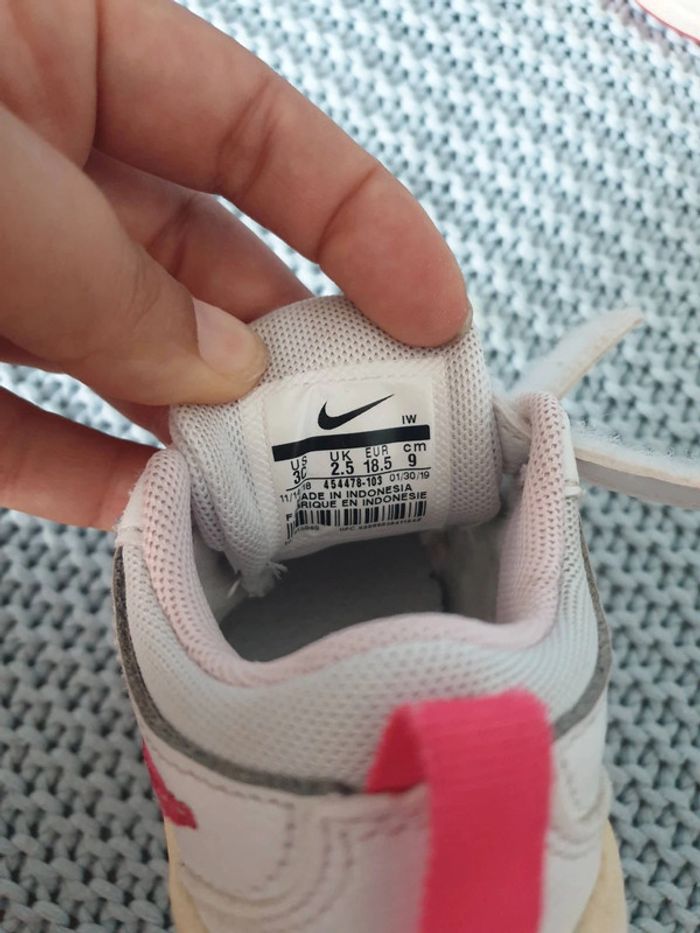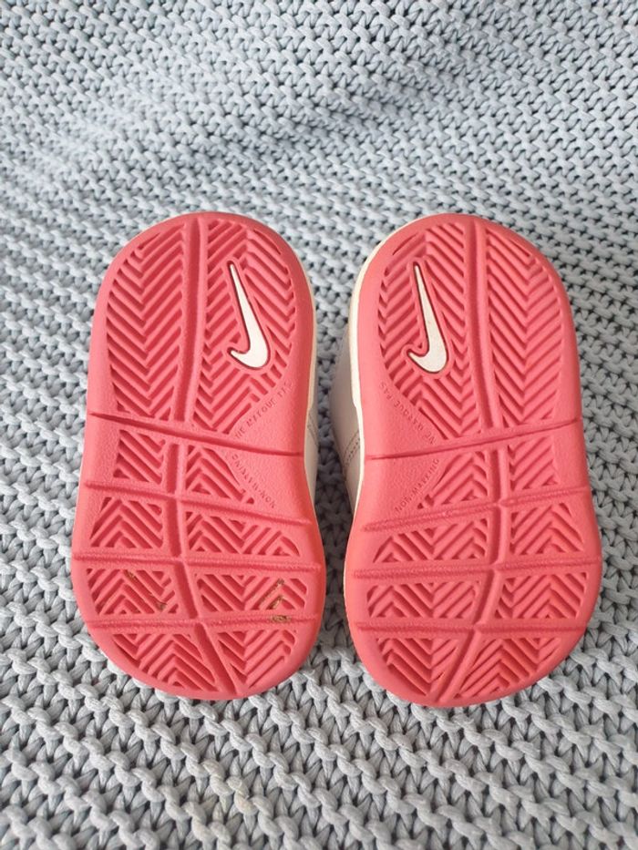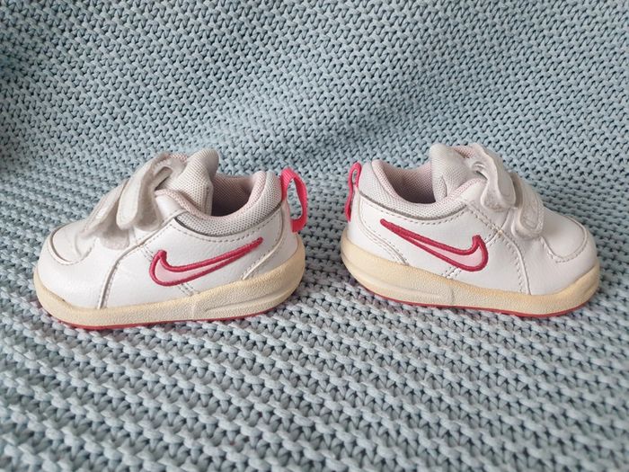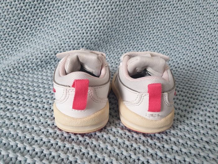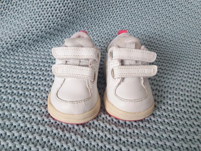 Baskets blanches et roses à scratch. Marque Nike. Pointure 18,5. #mimidacenfant #mimidacchaussures #mimidacchaussures18