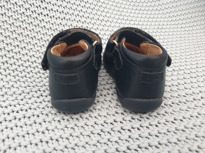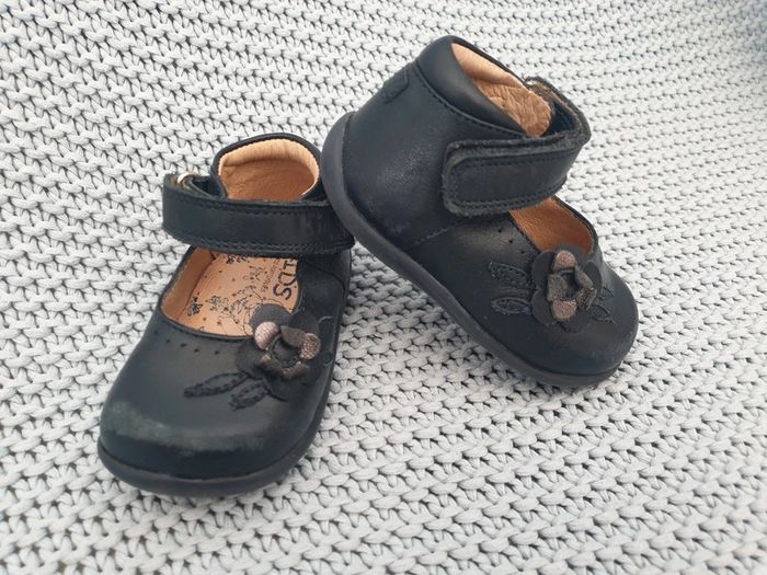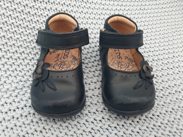 Sandales Salomés noires. Fermeture à scratchs. Marque de frottement sur l'avant de la chaussure. Marque Kids. Pointure 18. #mimidacenfant #mimidacchaussures #mimidacchaussures18