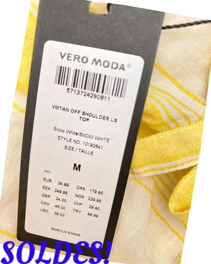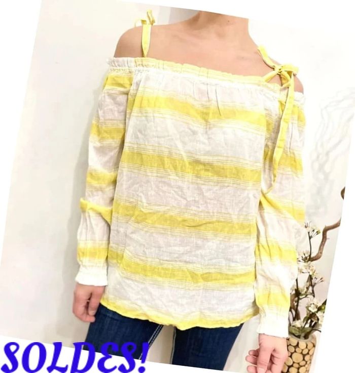 Jolie blouse à rayures jaune taille M/38 Bretelles amovibles