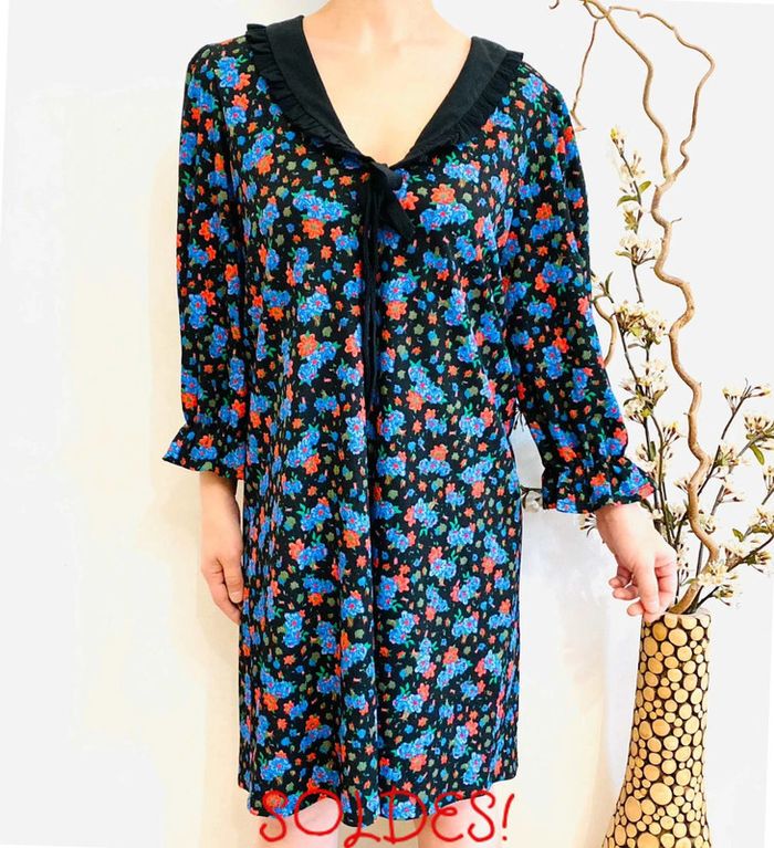 Belle robe ample noie fleurie taille S/M - photo numéro 2