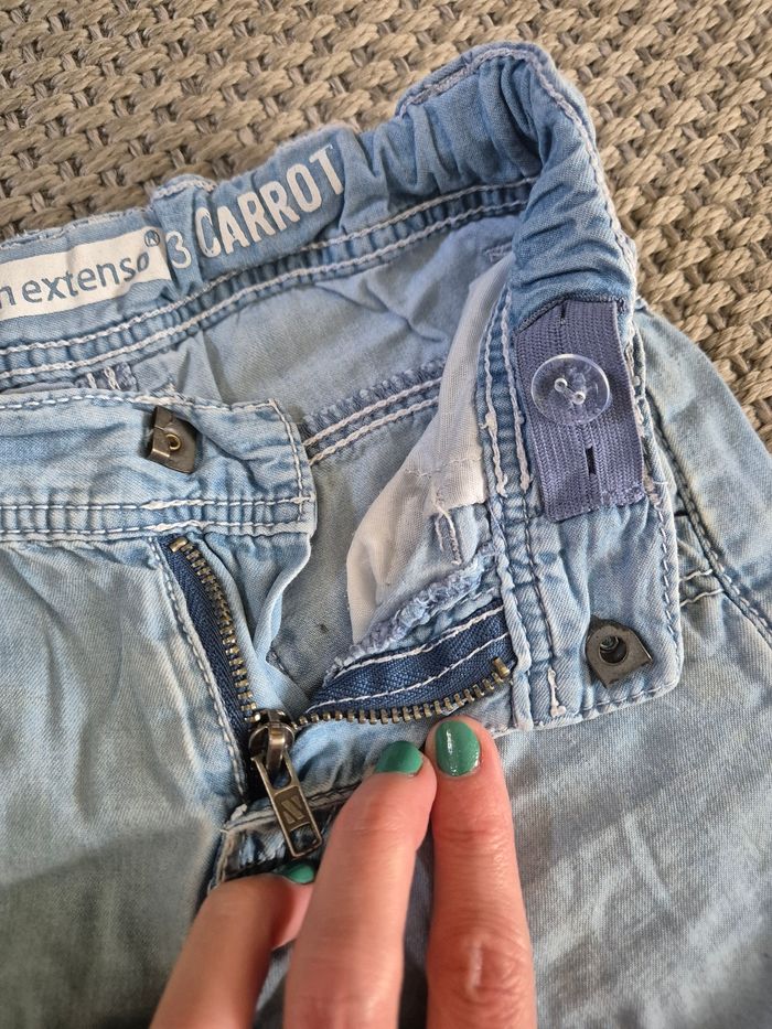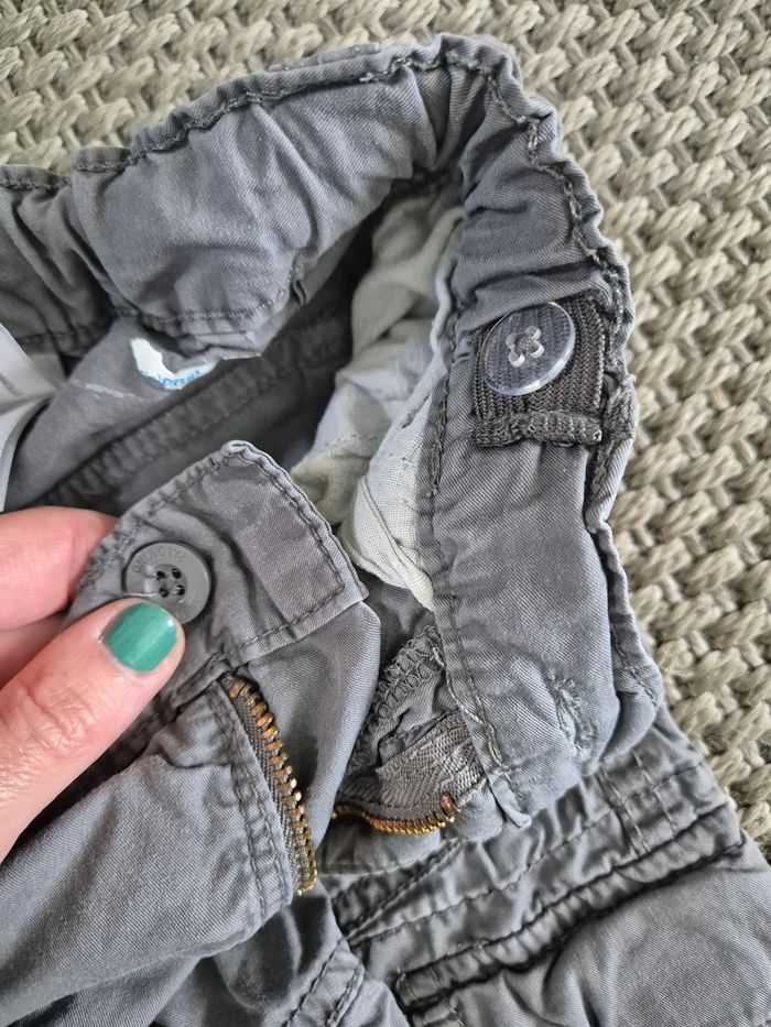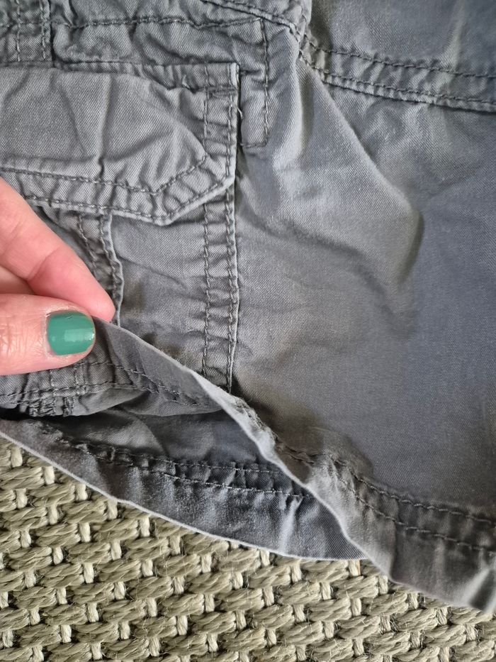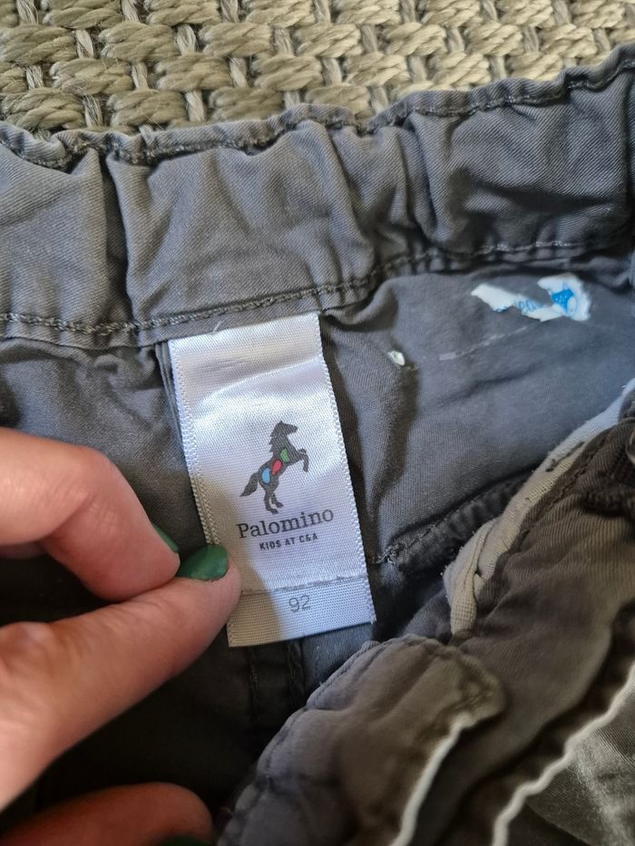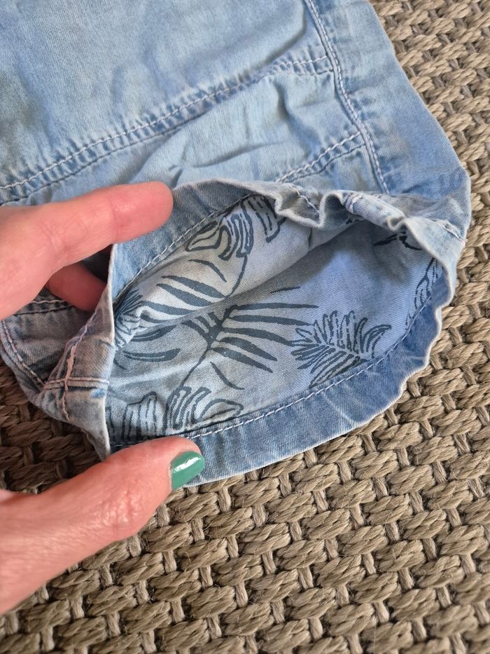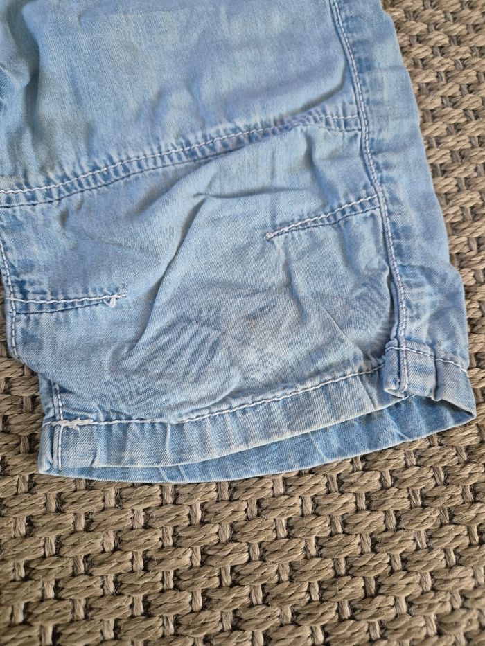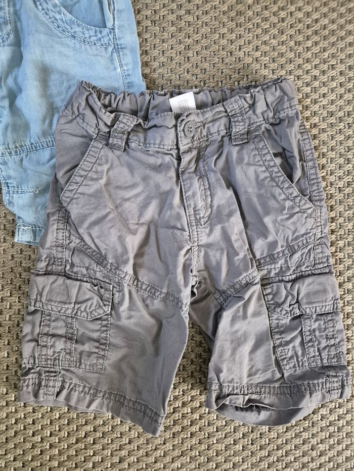 Lot de 2 shorts en bon état. Elastiques interieurs pour resserrer sur les deux. 1 couleur jean bleu clair très fin avec motifs feuilles sur les genoux. Taille 3 ans - marque In extenso 1 couleur gris avec beaucoup de poches assez léger. Taille 3ans - marque palomino.