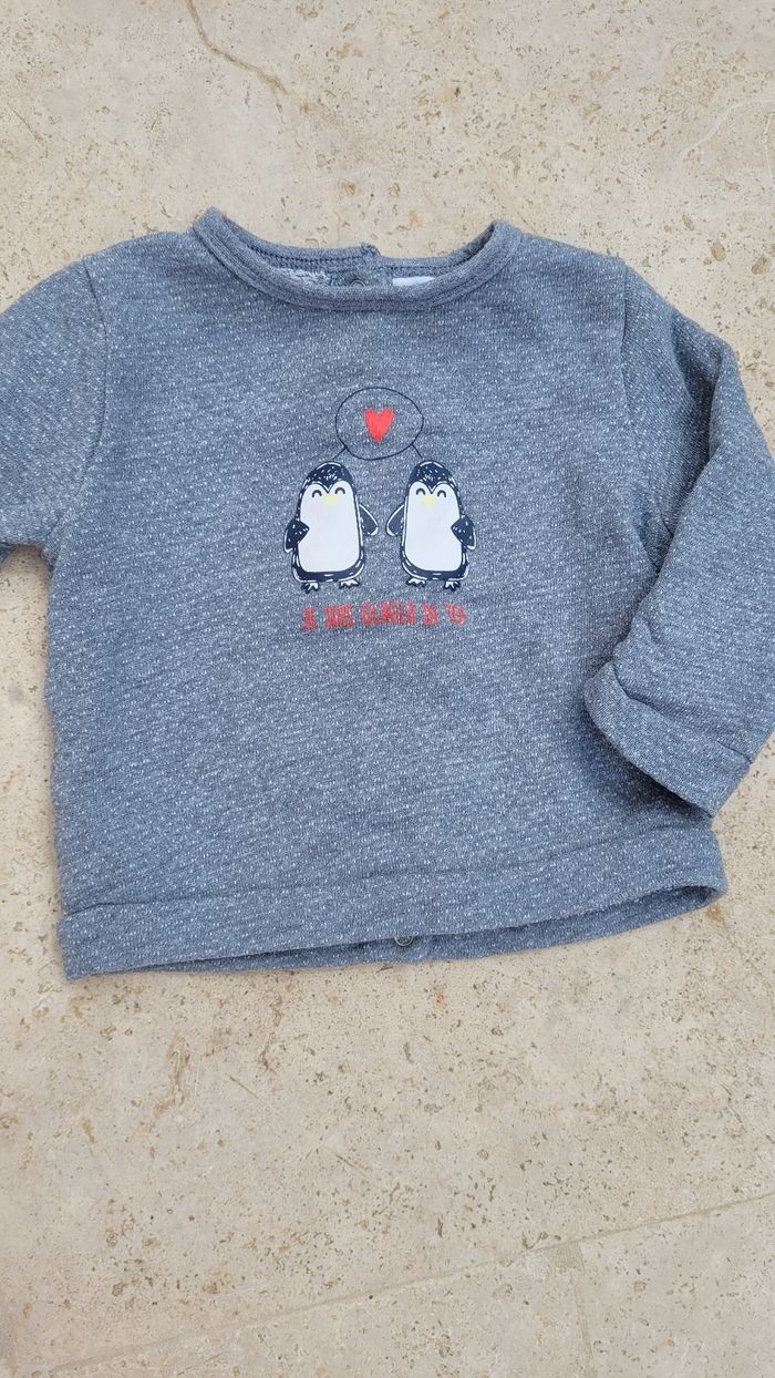 Pull fin gris tape a l'œil 6mois pingouin 🐧 "je suis glagla de toi"