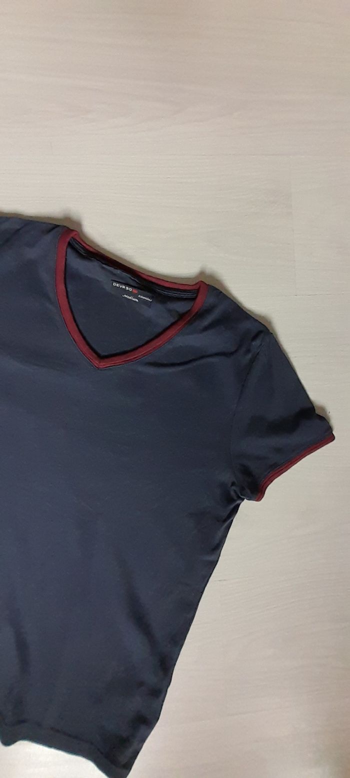 Tee-shirt taille M Marque DEVRED Couleur bleu marine et liseré bordeaux 100 % coton Très très bon état