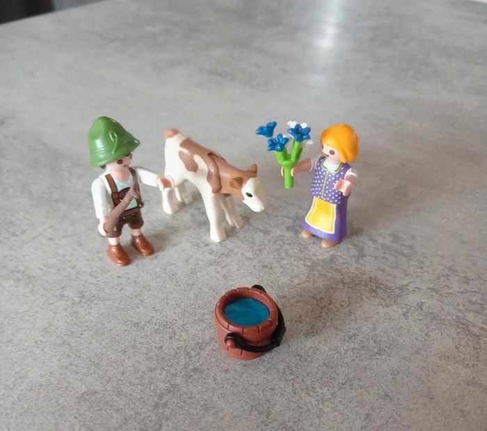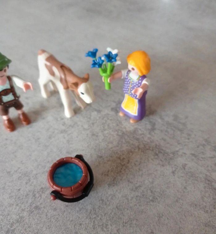 Playmobil deux personnages et un veau. Entier. #titiethanjouets