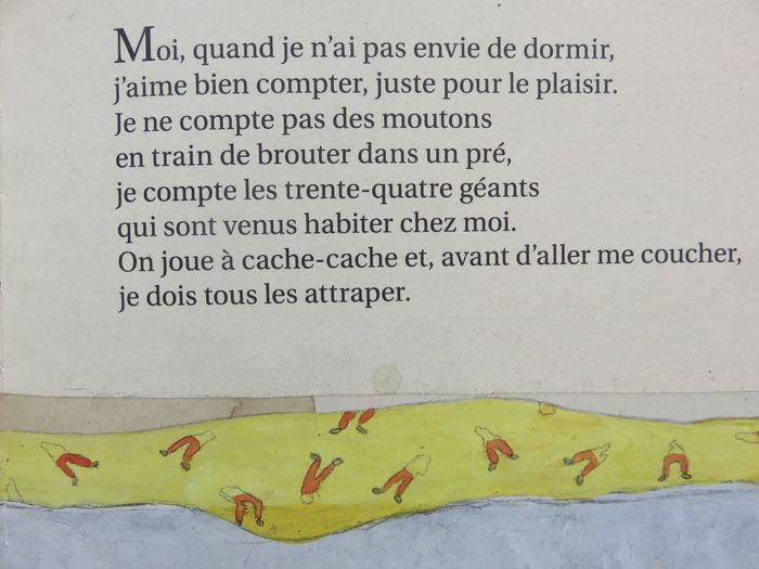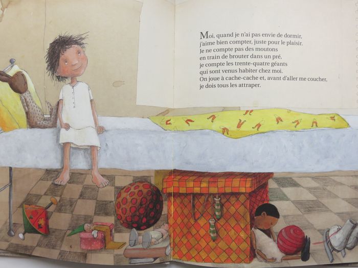 💰 PRIX FIXE quelque soit le nombre d'articles du dressing ⚠️ ÉTAT : Très bon état ⚠️ DÉTAILS : Relié. Couverture cartonnée ⚠️ RÉSUMÉ : Moi, dit le jeune héros de l'album, quand je n'arrive pas à m'endormir, je joue à compter les étonnants géants qui sont venus se cacher chez moi. J'en trouve partout dans la maison, quelques-uns derrière le piano ou dans la baignoire, deux grimpés sur des échasses, cinq prêts à prendre le bateau, d'autres encore, frileux, amoureux ou paresseux. Je les appelle tous par leur nom, pour qu'ils reviennent se poser sur ma couette. Une couette imprimée de drôles de personnages qui titillent l'imagination du jeune enfant... 📦 LIVRAISON : Envoi ou remise en main propre sur Lyon