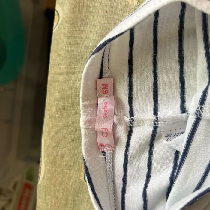 Jolie petit legging à rayure bleu et blanc en taille 6 mois. Le legging a été porter quelques fois mais il est en très bon état . De la marque Gémo.