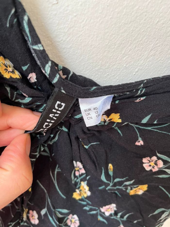 Petite robe noir à fleur H&M Petit noeud a l’avant niveau poitrine Taille 40 Très bon état