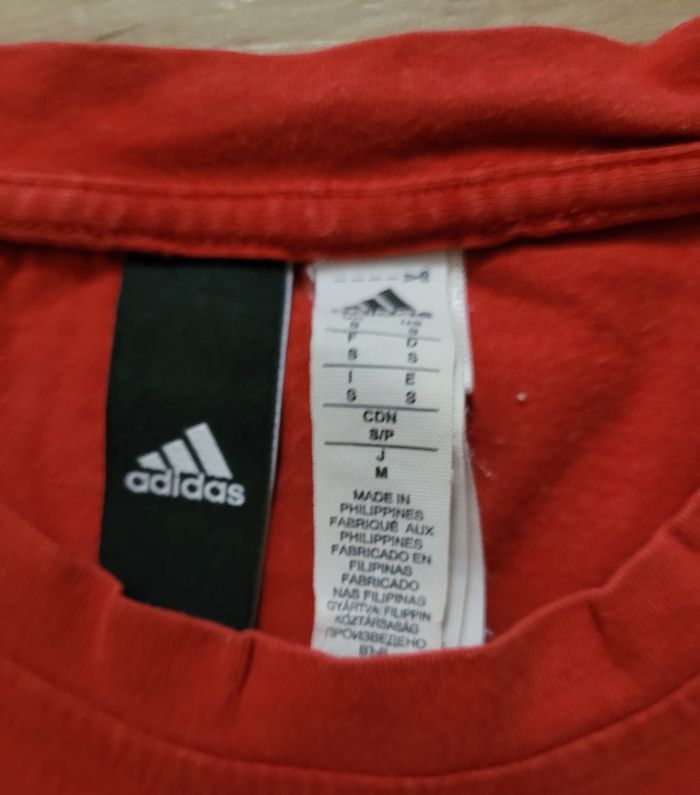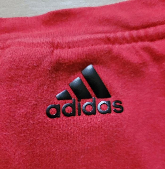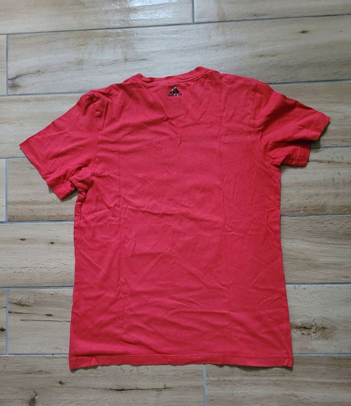 T-shirt manches courtes en coton rouge avec un petit motif coloré sur le devant.