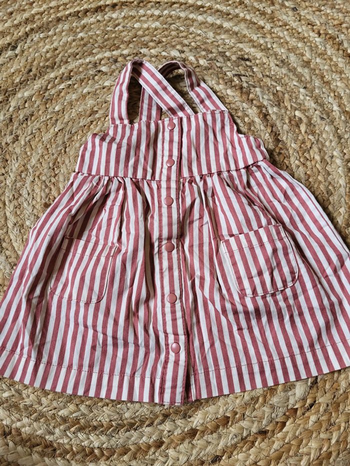 Robe kiabi neuve jamais mise. Il manque l'étiquette de la taille... ça serait du 1 mois voir max 3 mois. Couleur framboise et blanc