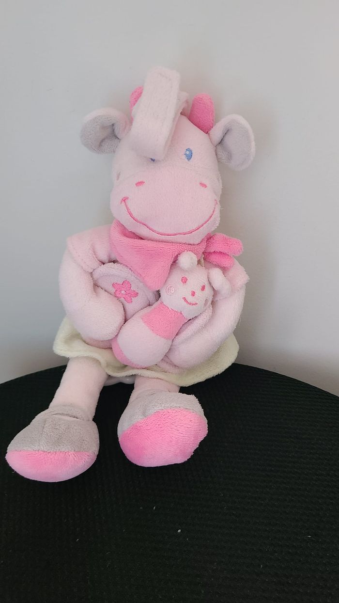 DOUDOU MUSICAL VACHE ROSE ROBE VERTE NICOTOY 142