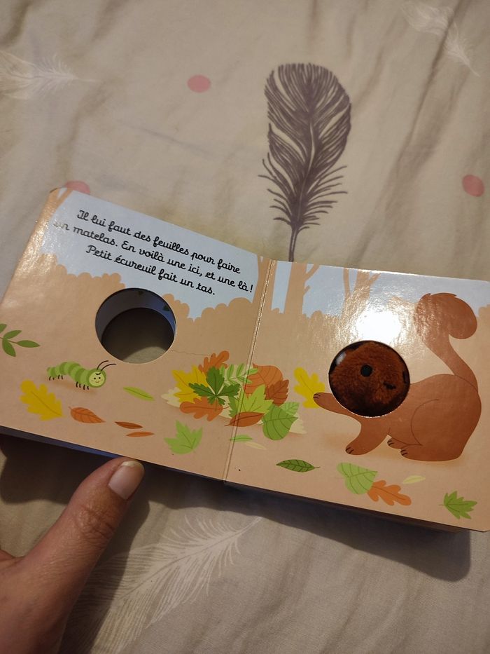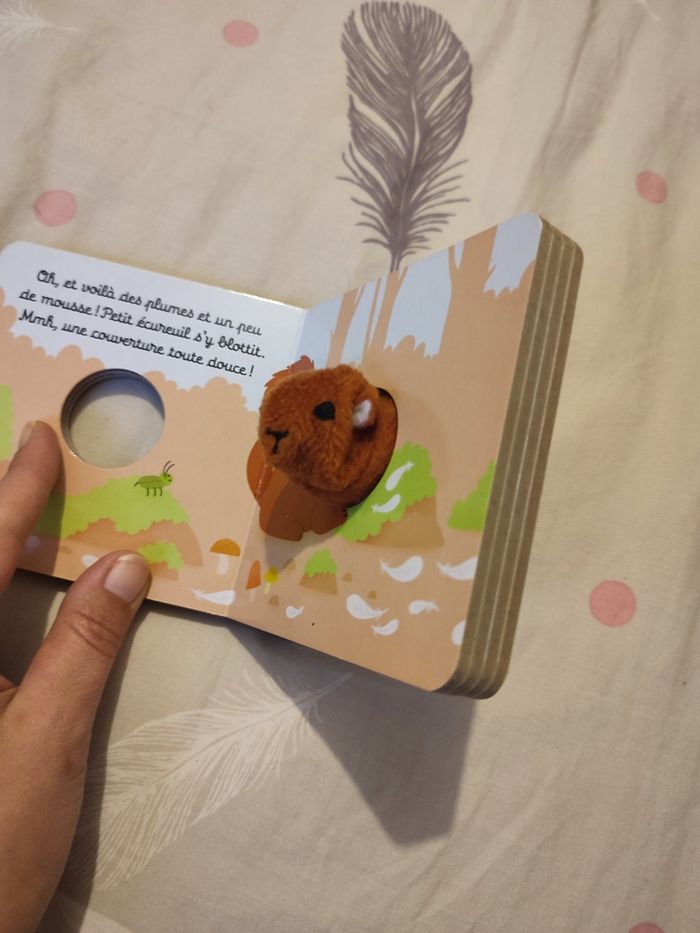 Livre cartonné avec "marionnette" écureuil 🐿️ Les coins ont un peu pliés mais reste en très bon état