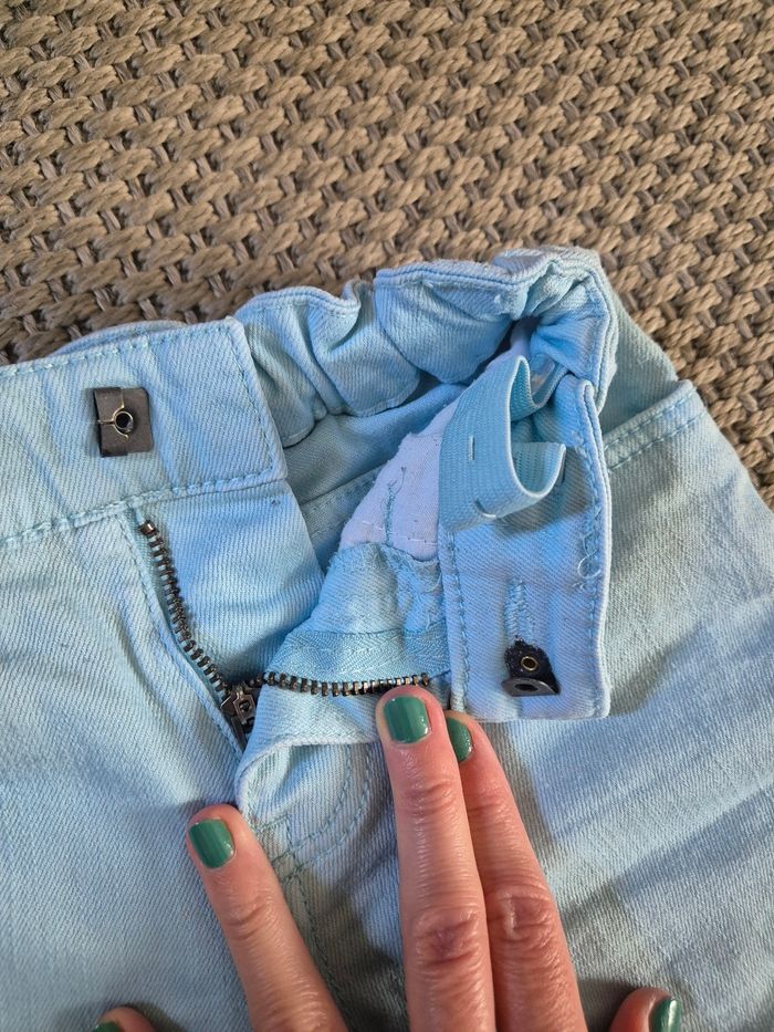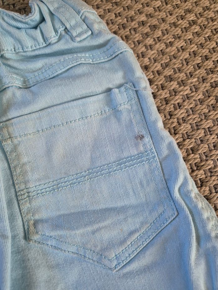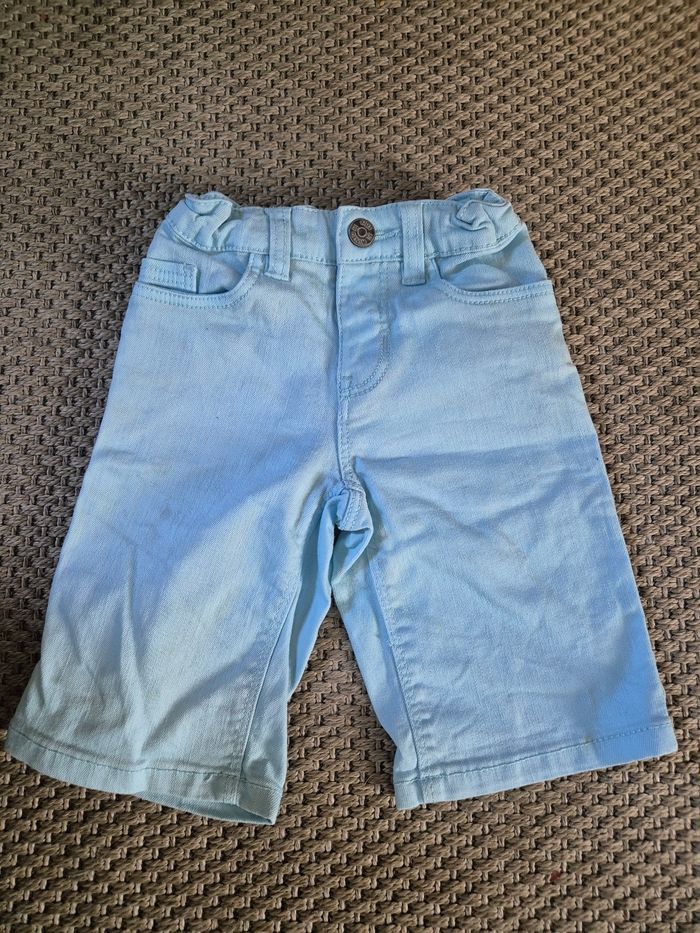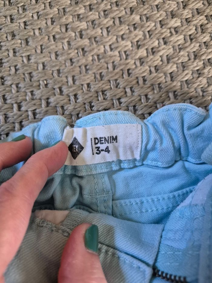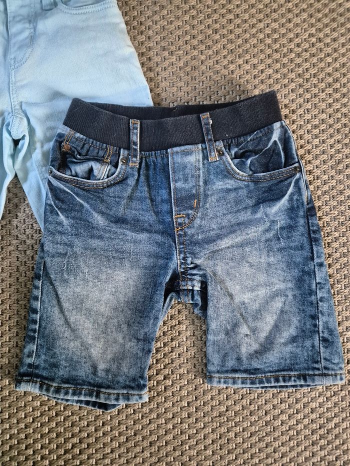 Lot de 2 shorts en jean en bon état. Elastiques interieurs pour resserrer sur le bleu clair. Tâches sur le bleu clair. Voir photos. 1 jean bleu clair. Taille 3/4 ans - marque tex 1 jean brut. Taille 3/4 ans - marque H&M