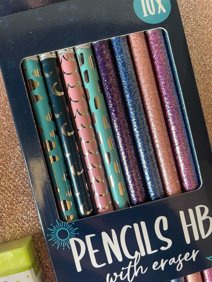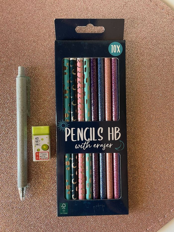 10x crayons à papier + 1x stylo + 1x gomme