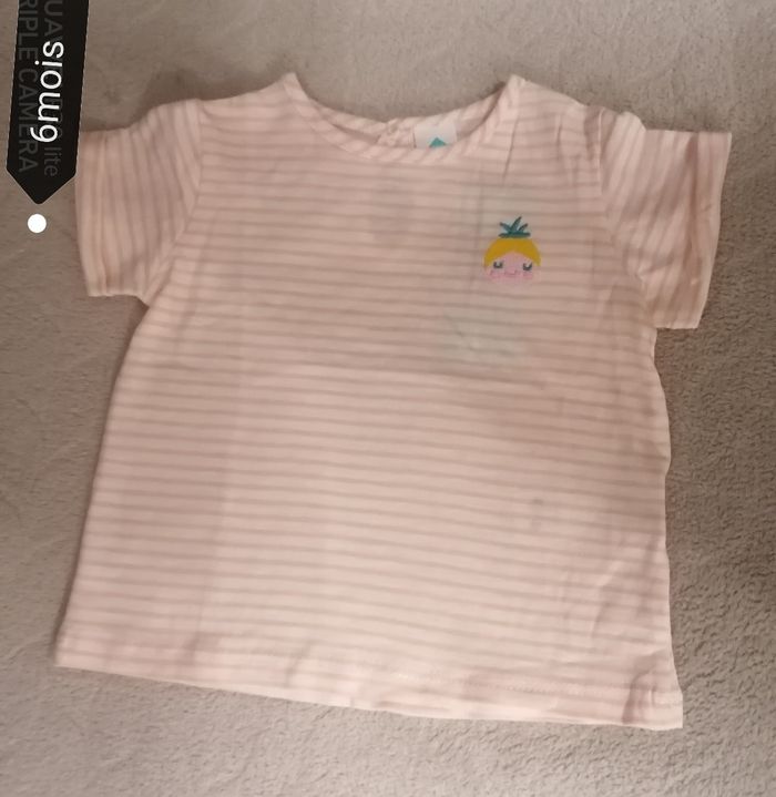 T. Shirts fille, tex baby 6mois (67cm).100%coton Rayures rose /blanc. Neuf avec étiquette 3.50€
