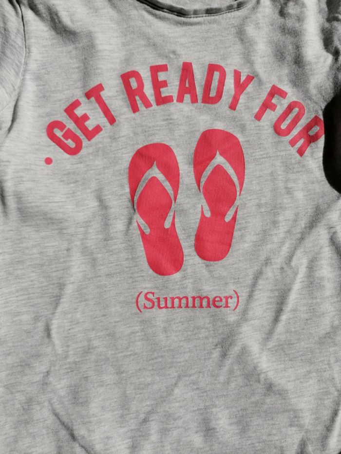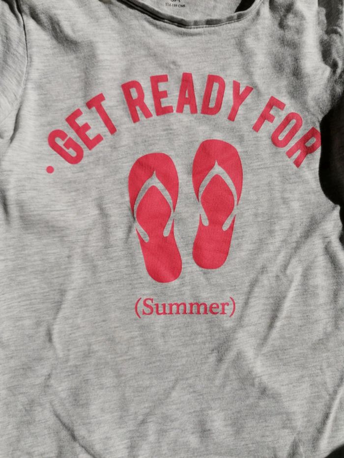Peu porté, cotton, manches courtes, gris, texte rose rouge, confort et léger 6 ans 114 116 cm #kiabifille