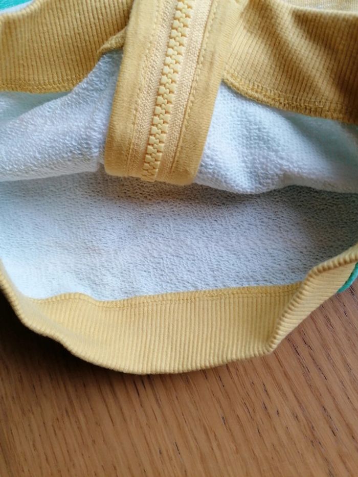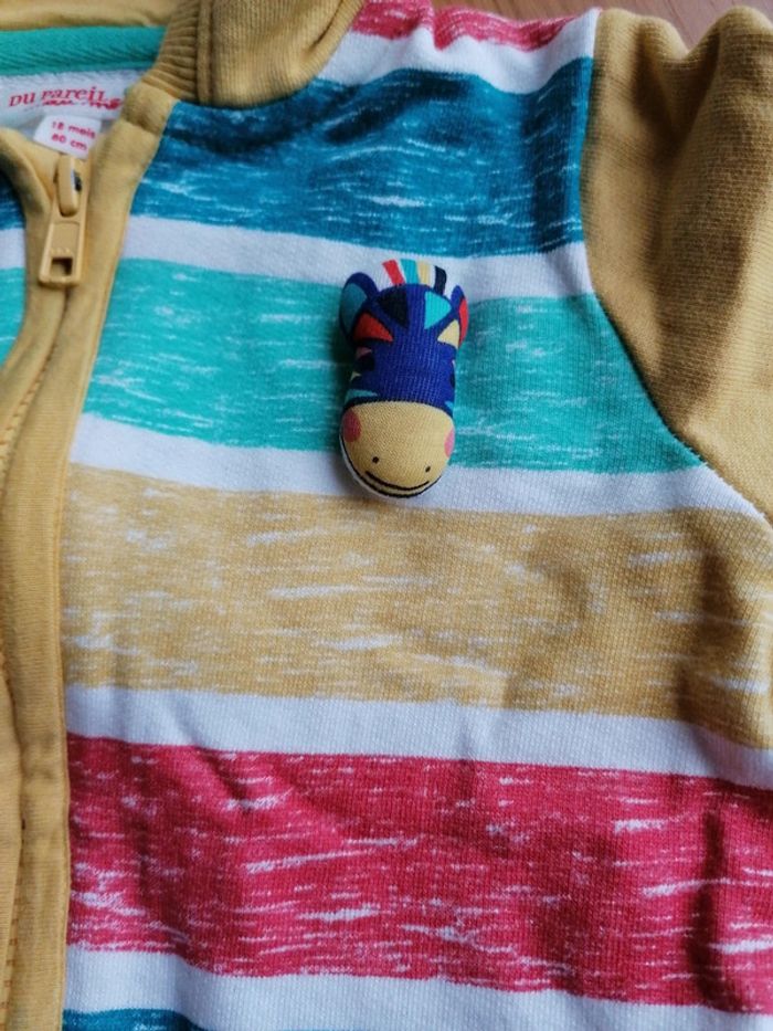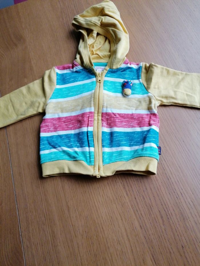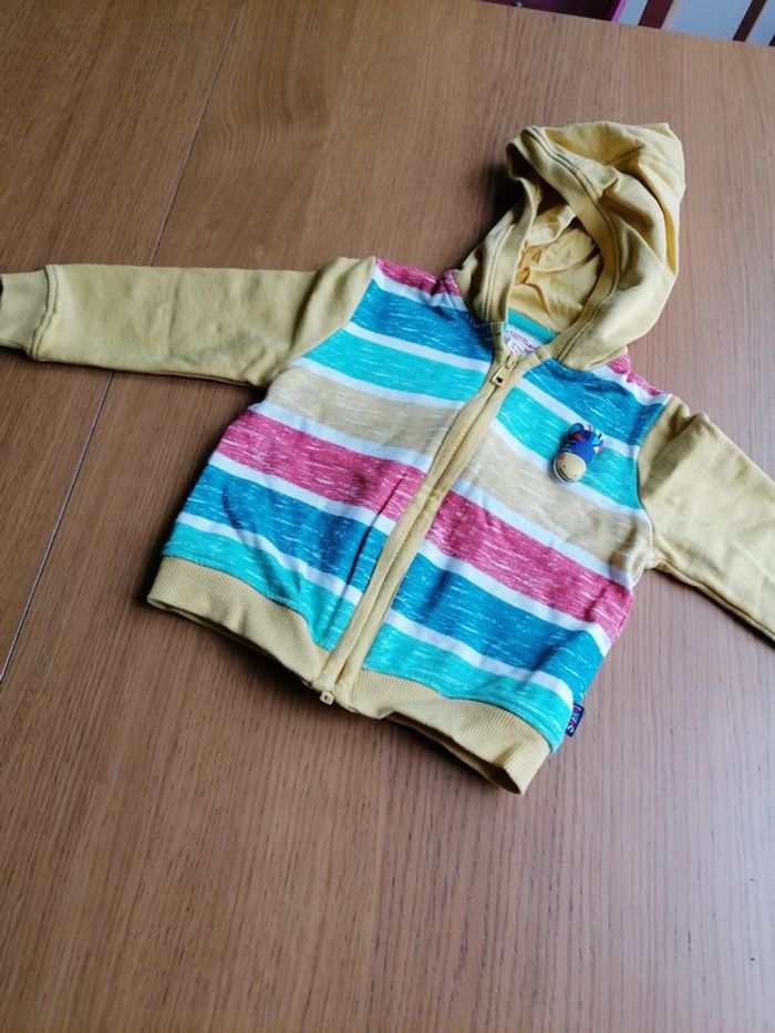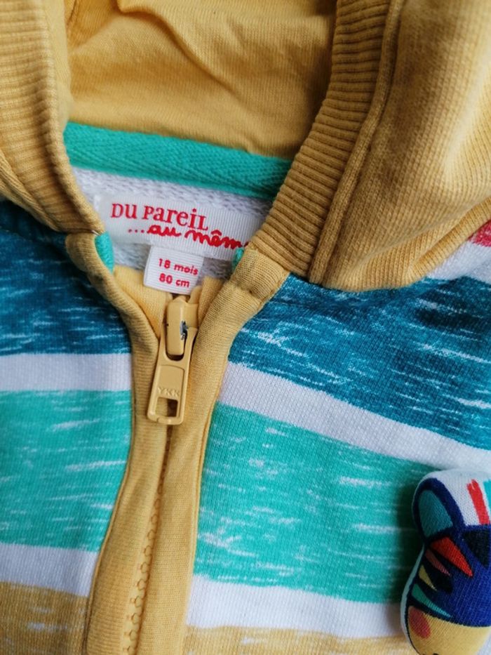 Sweet zippé à capuche 18 mois 80 cm jaune moutarde lignes de couleurs #dupareilaumeme