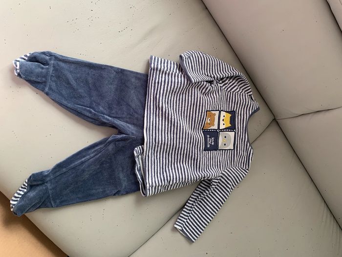 taille 9 mois le haut du pyjama a des pressions dans le dos on a la possibilité d’attacher le haut et le bas pour ne pas que bébé ait froid au dos pendant la nuit. idéal pour changer bébé 👶