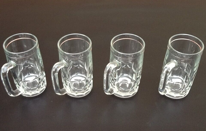 Années 1970 4 Chopes à bière Verre moulé France Contenance : 30cl Hauteur : 130mm Diamètre : 68mm Poids total : 1kg600