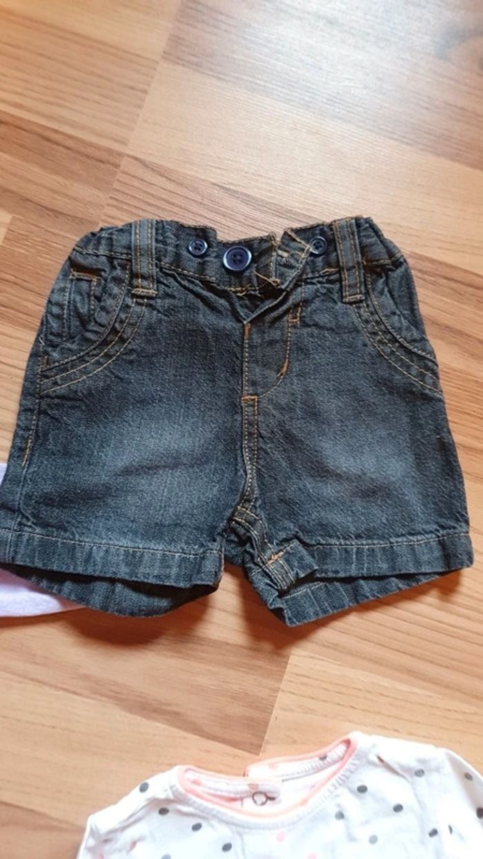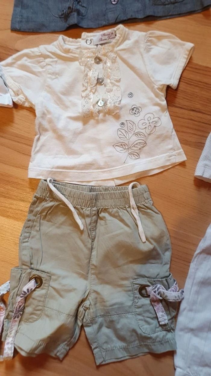 joli lot comprenant 1 pantalon blanc de marque kitchoun 2 shorts dont 1 devil child et 1 kaki 2 tee shirt amour de framboise 5 pièces de la première photo sont vendus. d ou baisse du prix