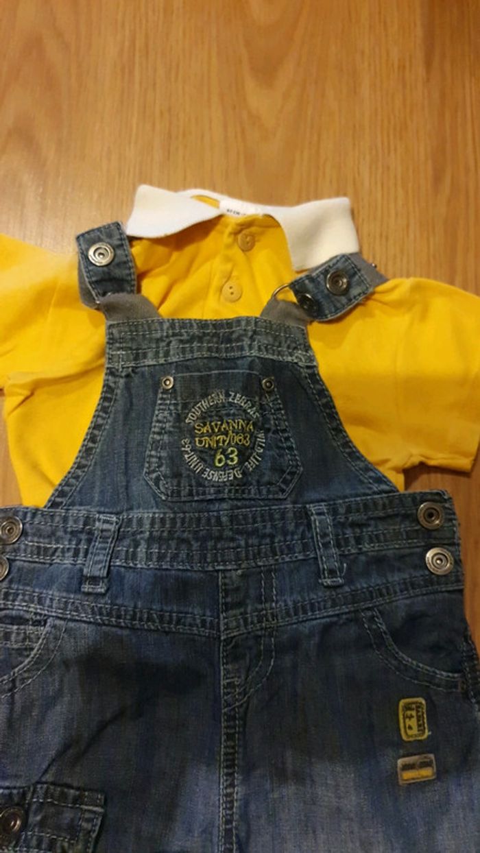 joli ensemble comprenant une salopette de marque alphabet et un polo de marque absorba. d autres ensembles dans ma galerie pour regrouper