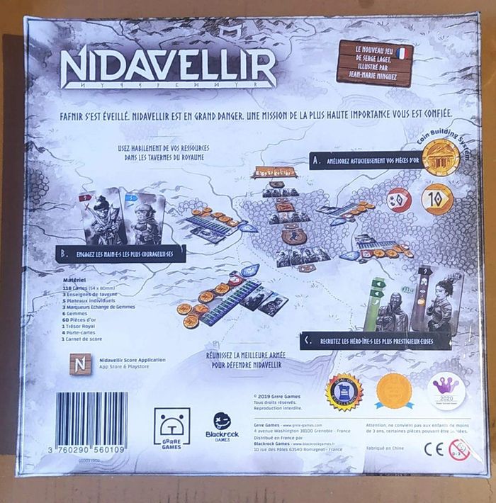 Vente professionnelle - Jeu de société sous emballage - Prix Ferme Français à partir de 10 ans 30mn à 1h 2 à 5 joueur(s) Sauvez le Royaume de Nidavellir Alors que Nidavellir, le Royaume des Nains et des Naines, était en paix depuis des millénaires, son futur se retrouve menacer par le dragon Fafnir. Bien décidé à ne pas se laisser faire, le Roi envoie ses vénérables Elvalands, sillonner les chemins du royaume pour recruter une armée de nains et de naines capable pour rétablir la paix. Le sort de Nidavellir est entre vos mains, découvrez les soldats les plus habiles et constituez le bataillon le plus puissant pour sauver le royaume ! Soyez à la hauteur de votre mission royale ! Dans Nidavellir, en tant que Elvaland mandaté par le pouvoir royal, votre mission sera de partir à la recherche des meilleurs nains pour former l'armée qui luttera contre le dragon et ramènera la paix sur le royaume. Mais vous ne serez pas seul dans votre quête. D'autres Elvalands sont bien décidés d'utiliser cette occasion pour s'attirer les faveurs du Roi. L'Elvaland qui réunira l'armée avec la plus grande Valeur de Bravoure remportera la partie. Comment jouer ? Nidavellir mélange des mécaniques de mises simultanées, de draft, de collection de cartes, de majorité et de "coin building". Les règles accessibles permettent un jeu rapide, fluide et tendu, que ce soit à deux ou cinq joueurs. Une partie de Nidavellir est composée de deux âges (Âge 1 et Âge 2), constitués chacun de 4 tours de jeu (à 2-3 joueurs et joueuses) ou 3 tours de jeu (à 4-5 joueurs et joueuses). Vidéo : https://www.youtube.com/watch?v=XiXtiQXufC0&ab_channel=Jevousexpliquelesr%C3%A8gles Ludipresta