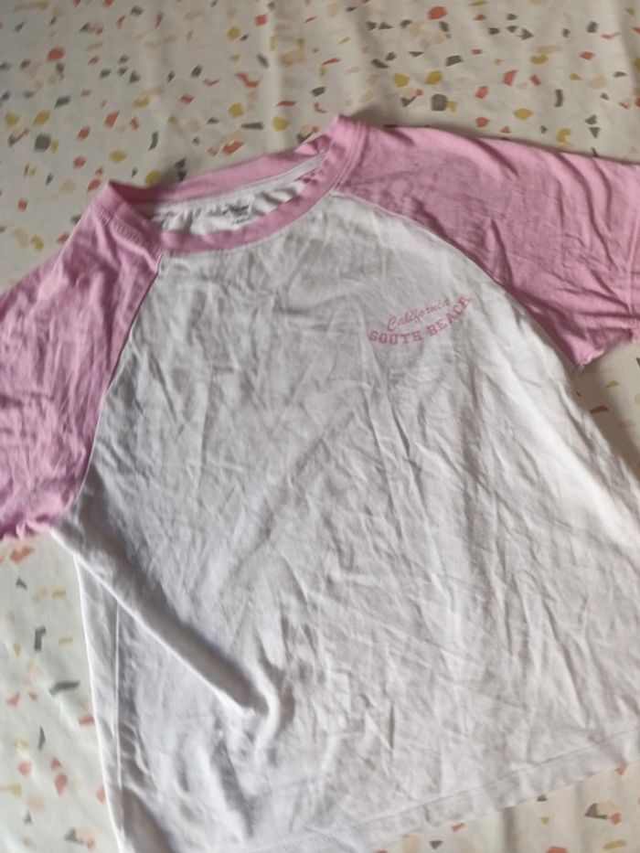 T-shirt rose et blanc taille s - photo numéro 4