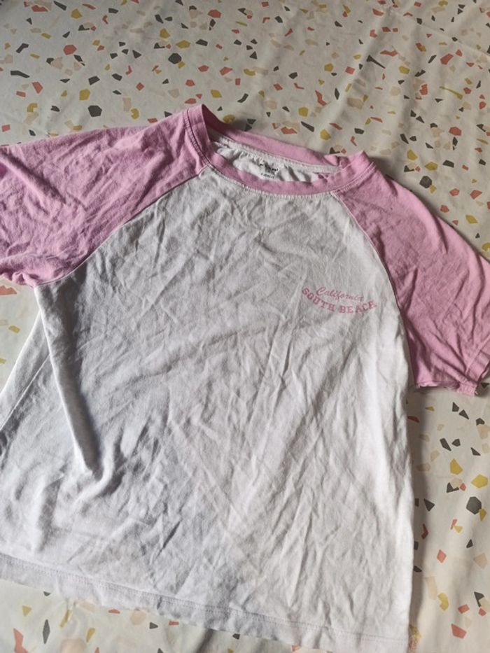 T-shirt rose et blanc taille s - photo numéro 1