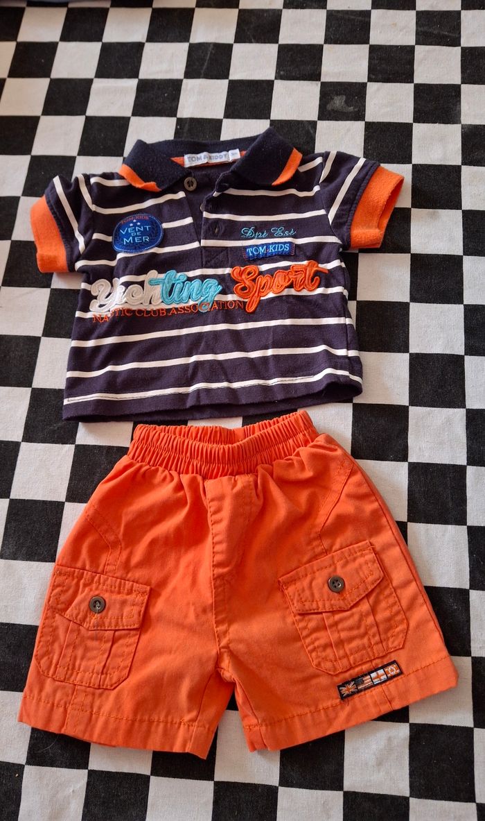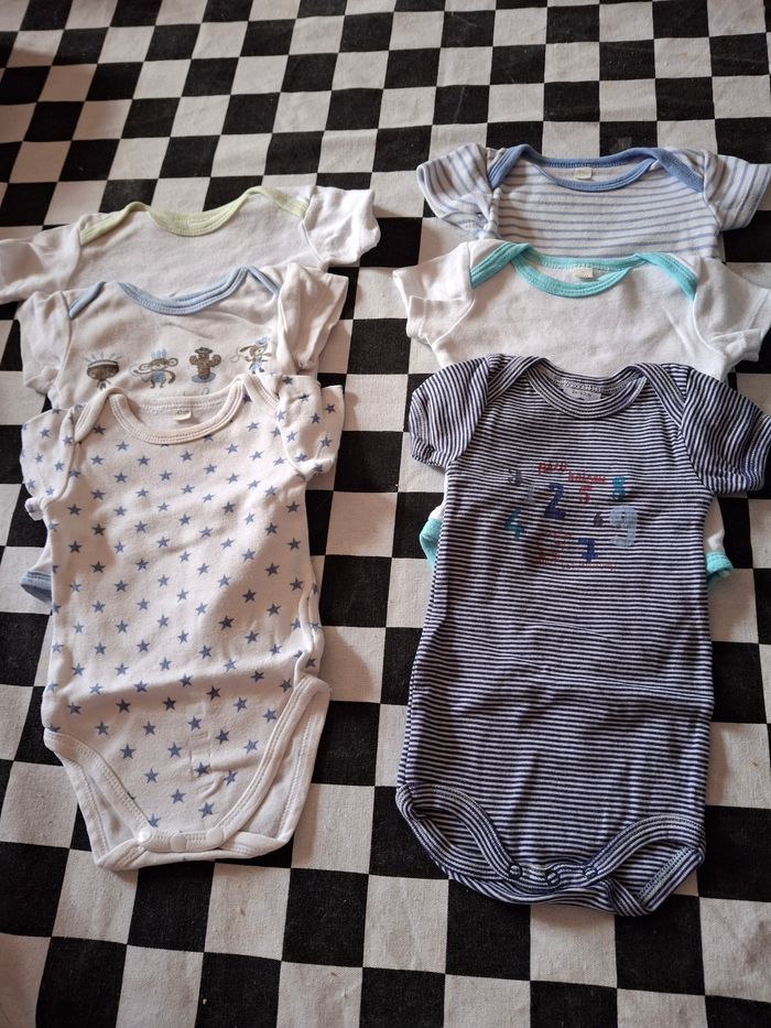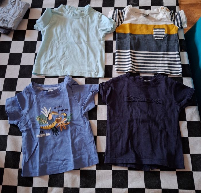 Lot de 20 vêtements été 3 mois (garçon) en très bon état 1 ensemble short + t-shirt 4 t-shirts manches courtes 2 chemise manches courtes 2 shorts 2 salopettes shorts 6 bodys manches courtes 2 pyjamas léger
