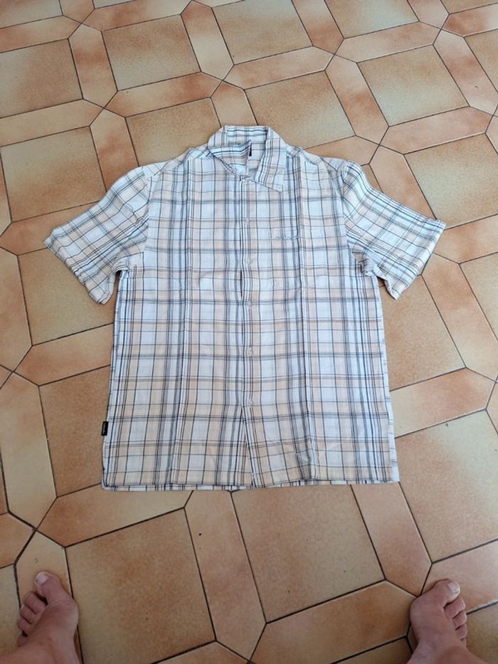 Chemisette manches courtes Marque Rip Curl Très bon état (voir photo) Elle a été lavée et repassée Taille S Regular fit Carreaux beige et bleu marine