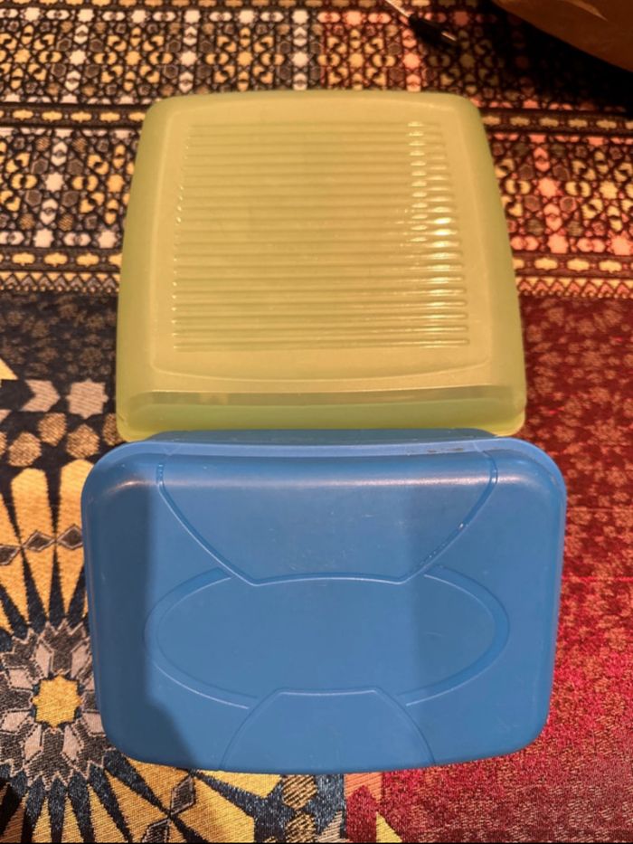 Une boîte verte et une boîte bleue