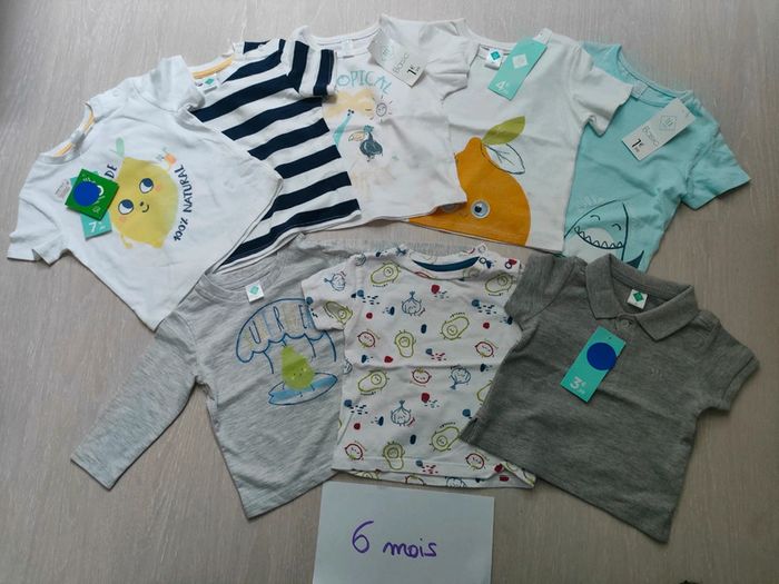 Lot de tee-shirts neuf 6 mois Seuls les 2 T-shirt avocat (en bas à gauche) ne sont pas neufs mais ont été peu mis