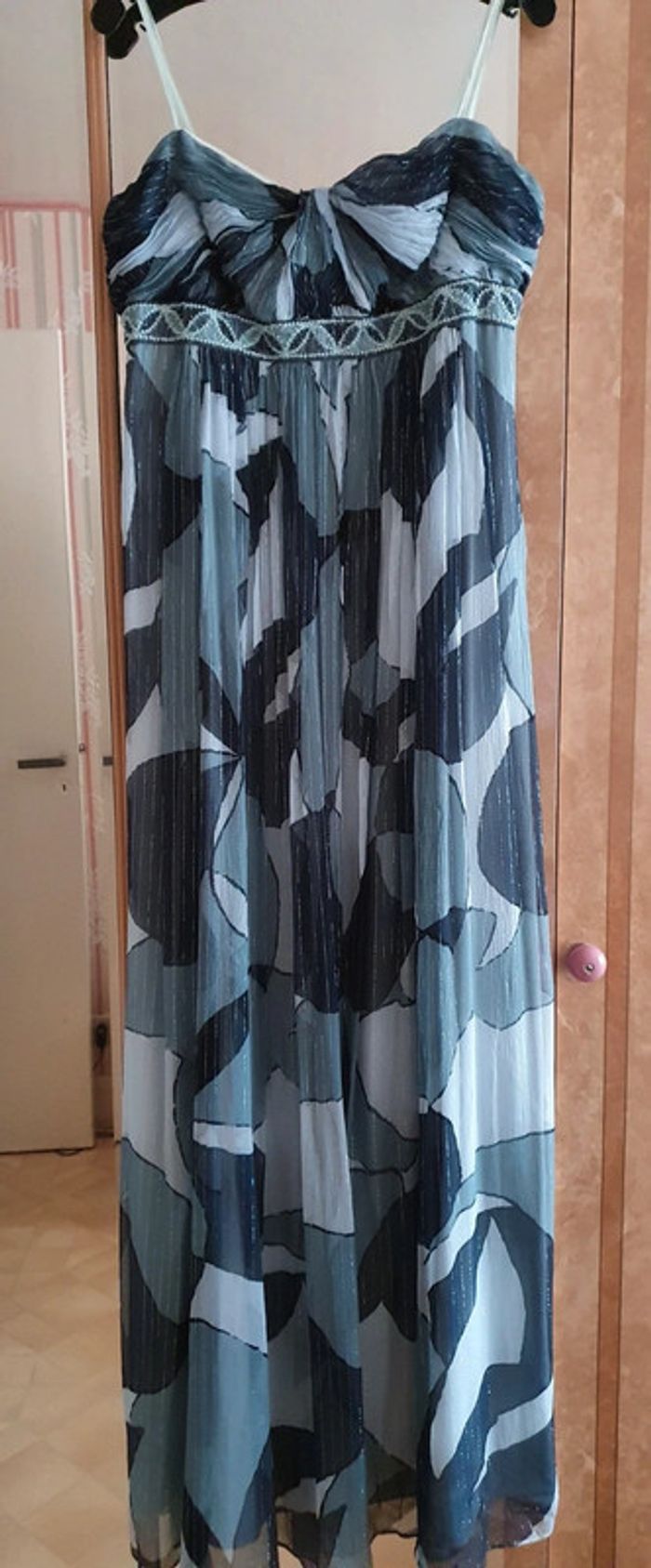 Robe de cocktail en mousseline de soie Avec lurex Robe de soirée bustier En parfait état porte 1 fois
