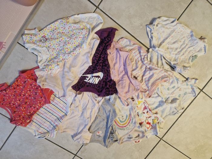 Lots de 14 bodies bébé fille manches courtes 3 mois Possibilité de modifier le lot à son goût.