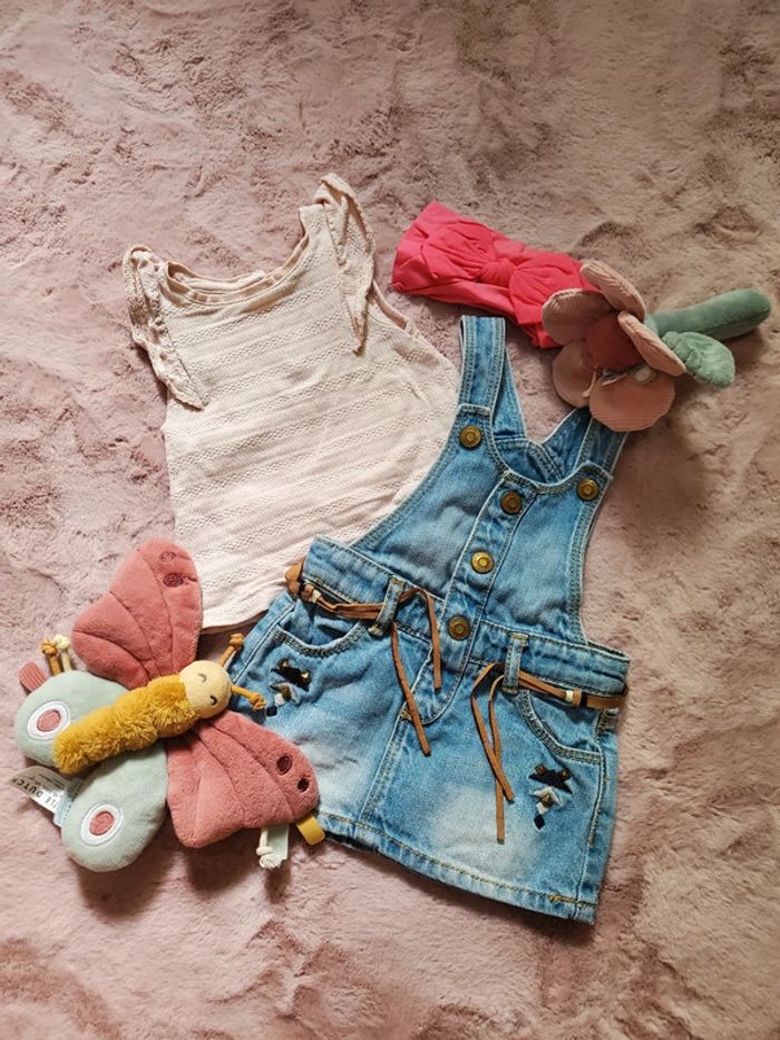 T-shirt tao 3m 59cm Robe jeans zara 3-6 mois 68cm Turban neuf #aud33140fille3mois