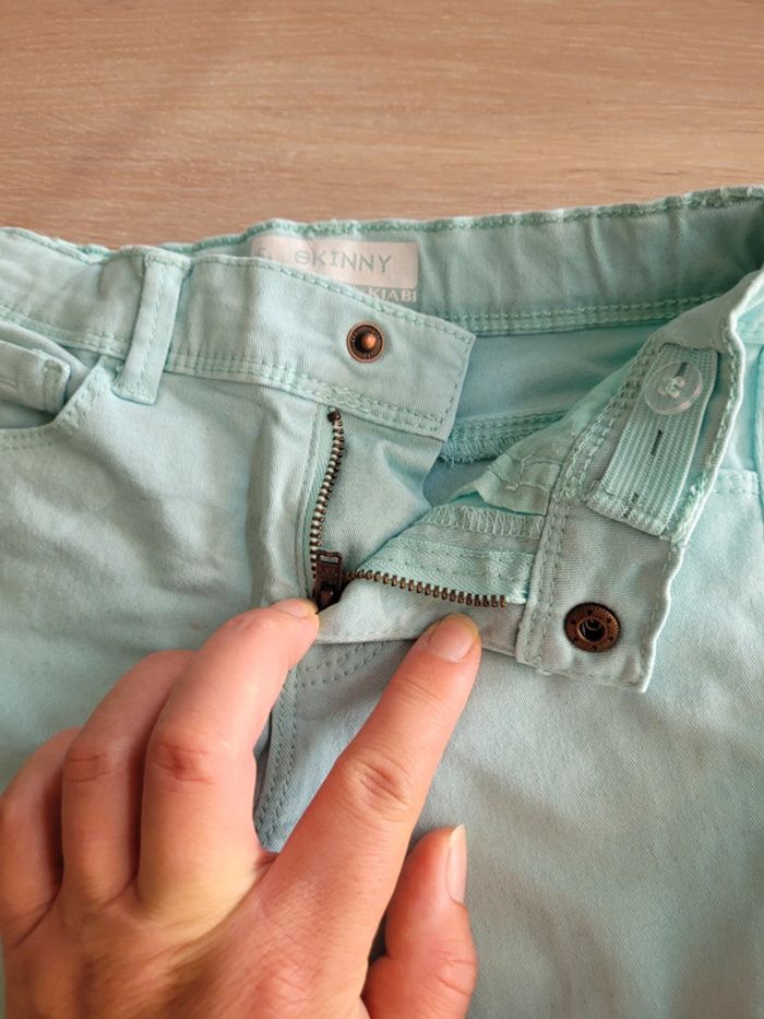 Jean skinny, Fermeture pression, taille réglable Tâche sur un genou voir photos #eva3028fillecinqans