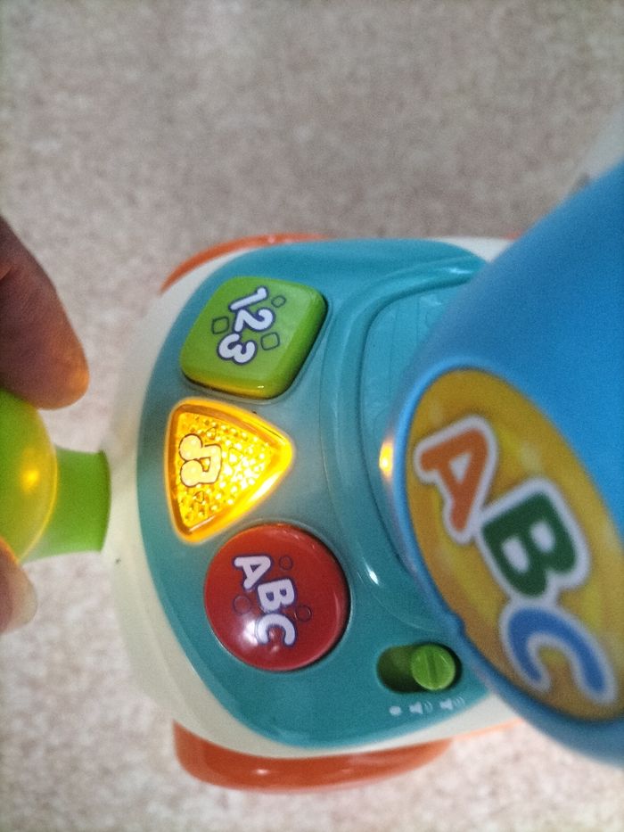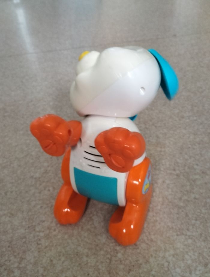 Jouet mon toutou de vtech le chien se redresse, tourne sur lui-même pour faire le beau puis avance tout seul. Parle , chante , fait de la musique etc etc Il possède 3 boutons forme pour découvrir les premières lettres, couleurs et chiffres. Ainsi que 2 chansons et 10 mélodies entraînantes. Permet à bébé de développer sa motricité et l'encourage à parler. Fonctionne avec 4 piles LR06 incluses Pour enfant dés 12 mois Excellent état Valeur plus de 40€ Vend 10€