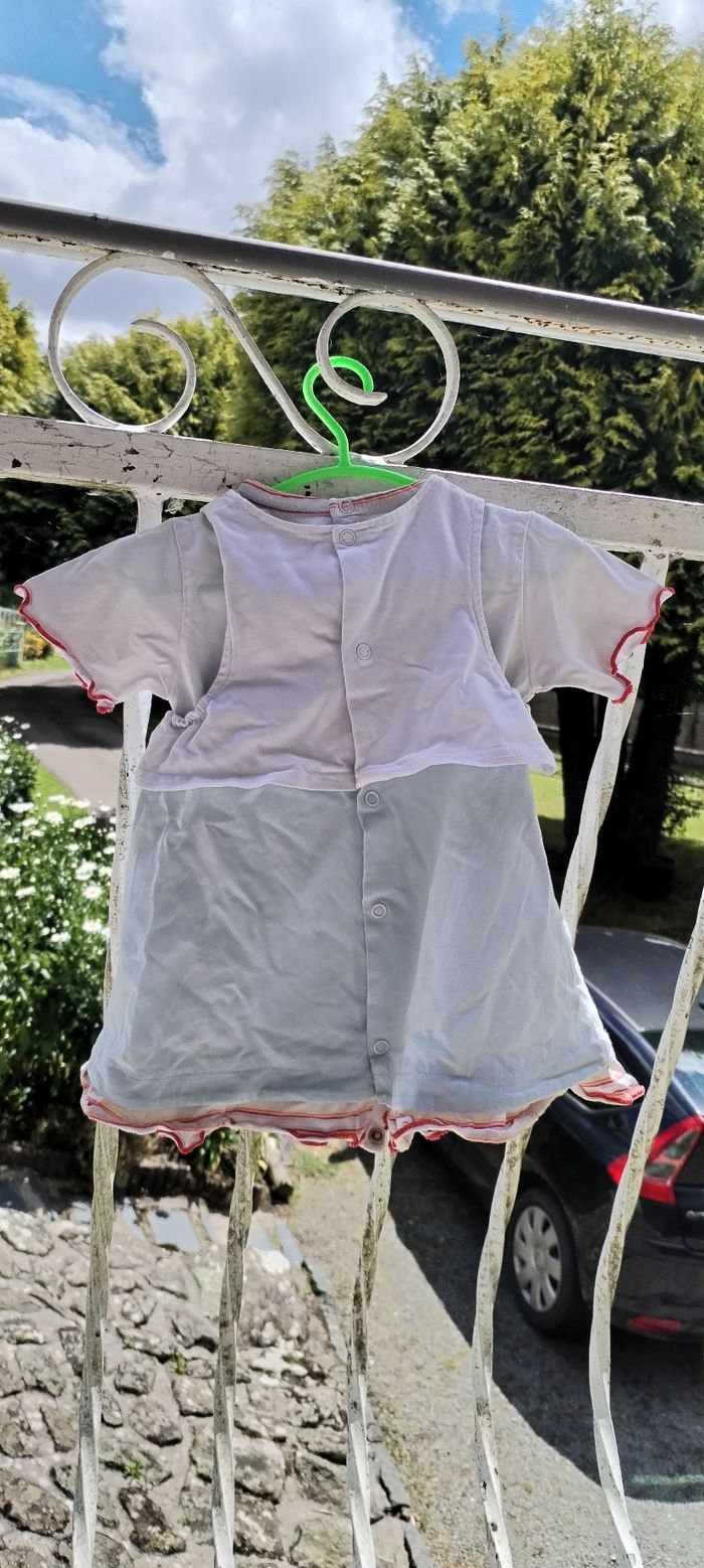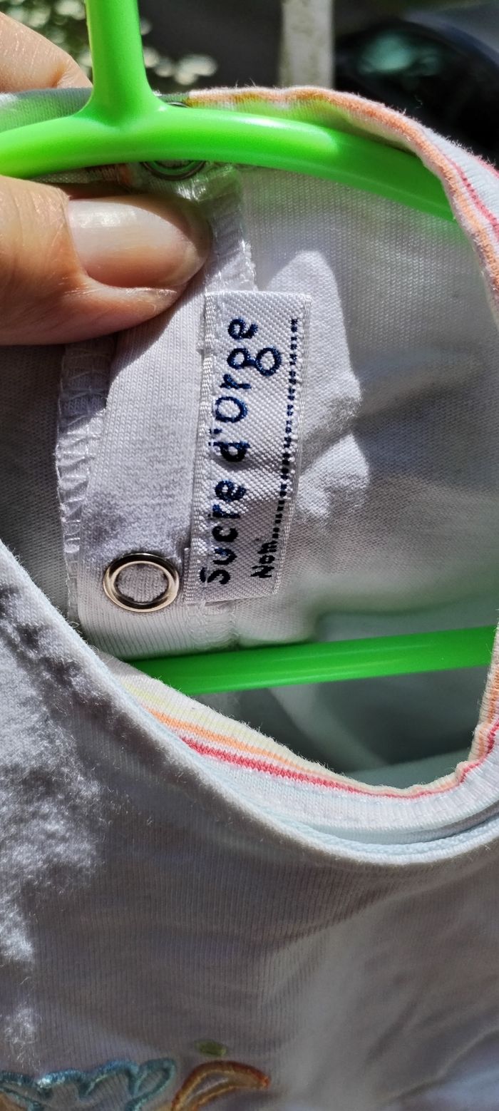 Robe à manches courtes avec T Shirt blanc à manches courtes intégré. Marque Sucre d'orge. Taille 6 mois. Comme neuve. Que mondial relais ou Relais Colis.