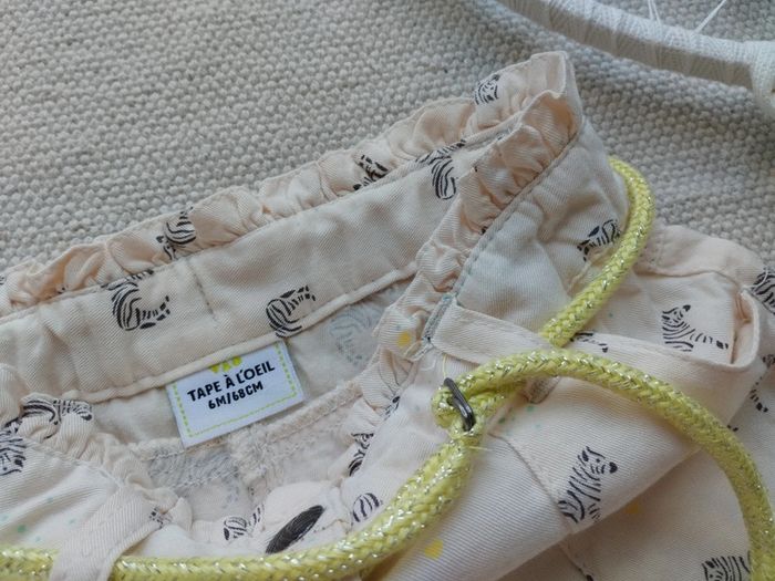 🍒Article : short fluide, beige avec des zèbres 🫐État : très bon état 🍉 Marque: TAO 📏Taille : 6 mois 🪡Matière et mesures: (sur demande) 🚭Maison NON fumeur 🍓Pas de surprise caché, vous recevrez ce que vous commandez, tout les défauts son dans les photos ou dans le descriptif 📦Envoie rapide et soigné, je fais des envois 2 ou 3 fois par semaine, du mardi au samedi ❔Si vous avez des questions n'hésitez pas à les poser je répondrai dans les plus brefs délais 🧺Tout les vêtements sont lavés, sèches a l'aire libre pas de sèche linge, repassé, puis stocke a l'abri de l'humidité. Pour trouver plus d'articles dans cette catégorie /taille cliquez sur le lien ci-dessous #ecirdney_6mois