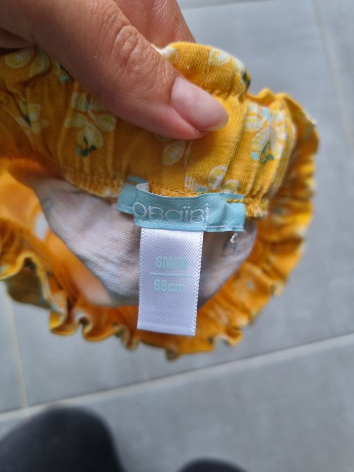 Lot de 2 shorts Le jaune est de la marque Obaibi - Taille 6 mois Le rose délavé est de la marque Zara kids - Taille 6/9 mois Possibilité de vente à l'unité (3€ le short Obaibi et 5€ le short Zara Kids)