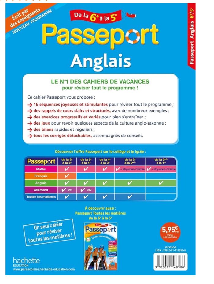 Cahier de vacances anglais de la sixième à la cinquième