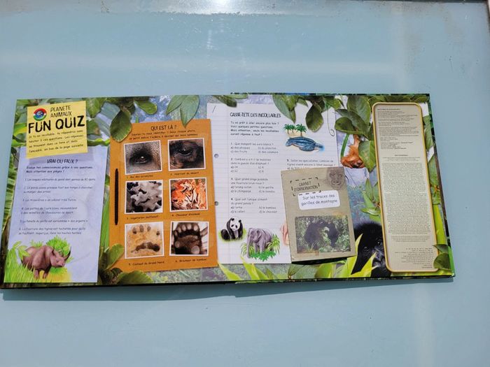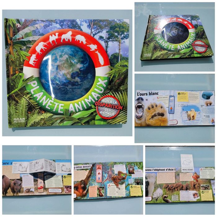 Avec Planète animaux, pars pour une grande aventure sur notre planète ! Tu seras bientôt nez à nez - ou nez à museau - avec les animaux en voie de disparition et tu sauras tout sur leur vie quotidienne, les dangers qui et ce qu'il faut faire pour les sauver. Un livre qui fourmille d'animations : cartes, carnet, fiches techniques... Livre en bon état général, il manque la carte des crocodiles, et la pochette de la carte est déchirée (cf dernière photo) Quelques petits défauts mais ça reste un très beau livre Livre acheté 19.90€ Pour voir mes autres livres enfants : #livreenfantmooglou