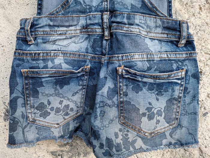 Très belle salopette short en jeans de la marque Kookaï, impression fleurs tons sur tons delavé, taille 10 ans, très bon état Pour voir mes autres vêtements en 10 ans : #10ansfillemooglou #kookaïmooglou