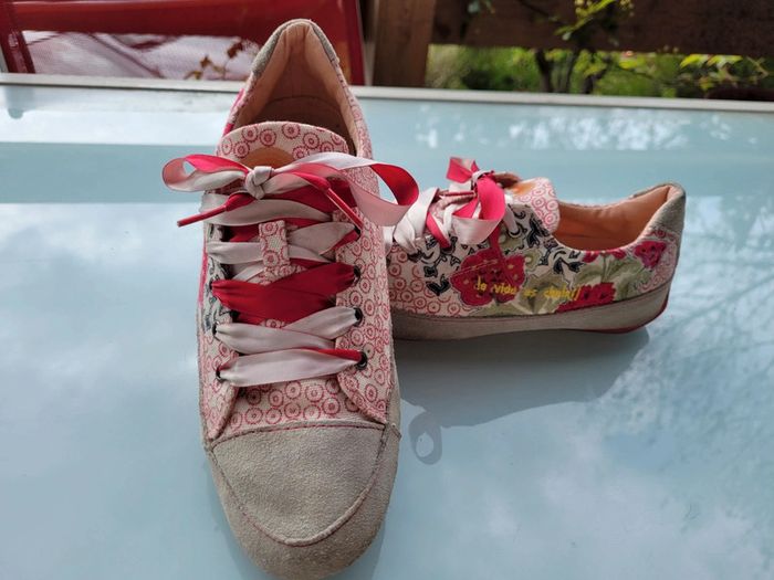 Superbe baskets en toile Desigual, lacets ruban satin, pointure 38 - photo numéro 1