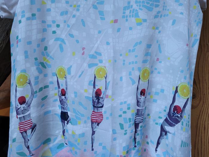 Superbe robe Catimini, fluide, devant en satin, motifs baigneuses 🏊, 12 ans
